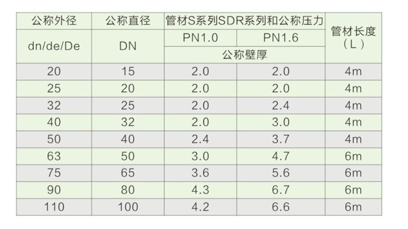 簡介—— 注意事項:1、管材的長度4米、6米,出貨時按整根計算;2、 注意公稱外徑(dn,de/De及公稱直徑DN ),在提材料時